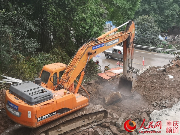 7月16日,萬(wàn)州區(qū)遭遇大暴雨襲擊,時(shí)段內(nèi)降水量達(dá)到100mm左右,國(guó)道318線萬(wàn)州境內(nèi)多處山體垮塌,大小塌方地段有40多處。其中,山洪沖垮了國(guó)道318線與萬(wàn)州長(zhǎng)嶺鎮(zhèn)龍立村鄉(xiāng)道交界處的原有擋墻,形成長(zhǎng)約60米、足有4000多方的大面積滑坡體,造成318國(guó)道臨時(shí)斷通。險(xiǎn)情發(fā)生后,中交一公局三公司萬(wàn)州項(xiàng)目部集結(jié)挖掘機(jī)、裝載機(jī)、沖擊錘等專業(yè)裝備,第一時(shí)間趕赴現(xiàn)場(chǎng)展開(kāi)搶通工作。本著方量先小后大、道路先通后暢的原則,依次實(shí)現(xiàn)絕大部分路段迅速初通,然后集中機(jī)械力量對(duì)兩處較大規(guī)模塌方路段進(jìn)行重點(diǎn)突擊搶通。