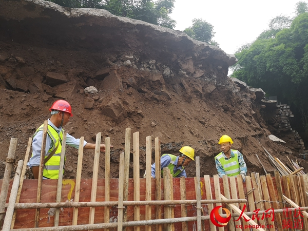 連續(xù)幾天,搶通人員加強(qiáng)臨邊安全維護(hù),加緊新設(shè)計(jì)擋墻基坑開(kāi)挖清理,進(jìn)入砌筑“衡重式”片石混凝土擋墻、設(shè)置永久性工程的重要施工環(huán)節(jié)。預(yù)計(jì)經(jīng)過(guò)12個(gè)日夜的連軸施工,整個(gè)擋墻修復(fù)工程將在8月1號(hào)左右完工。